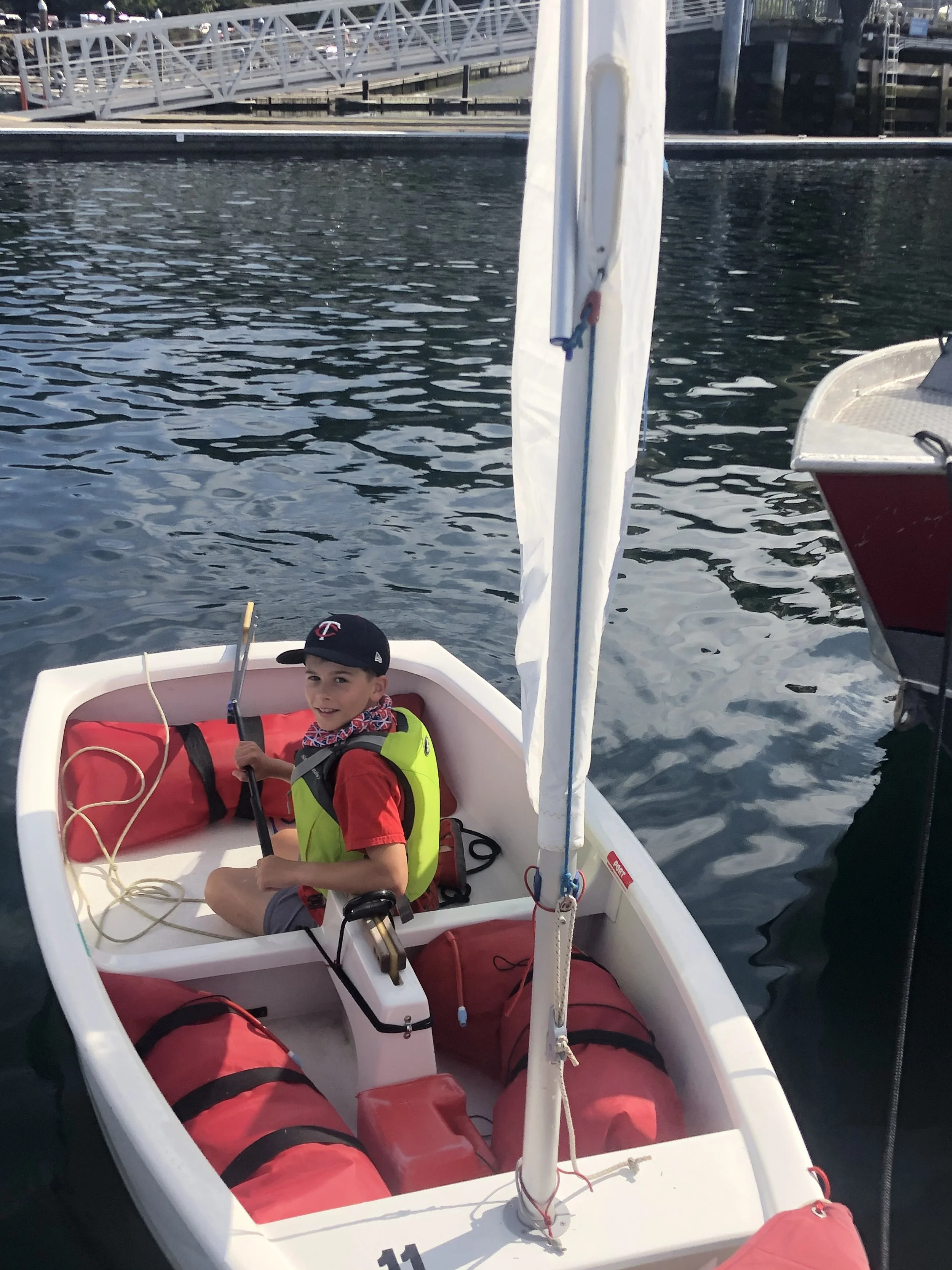 This is a class for prospective young sailors who are looking to have fun on and around the water. This is NOT a “learn to sail” class, but a program designed to improve a child’s comfort and confidence around water, as well as develop respect for our marine environment. Guppies will enjoy a variety of sailing related activities each day, including games, arts & crafts, boat rides, knot tying, and swim time. Upon director approval, graduates of the Guppy program may enroll in our Beginner Learn to Sail program a year early at the age of 7.